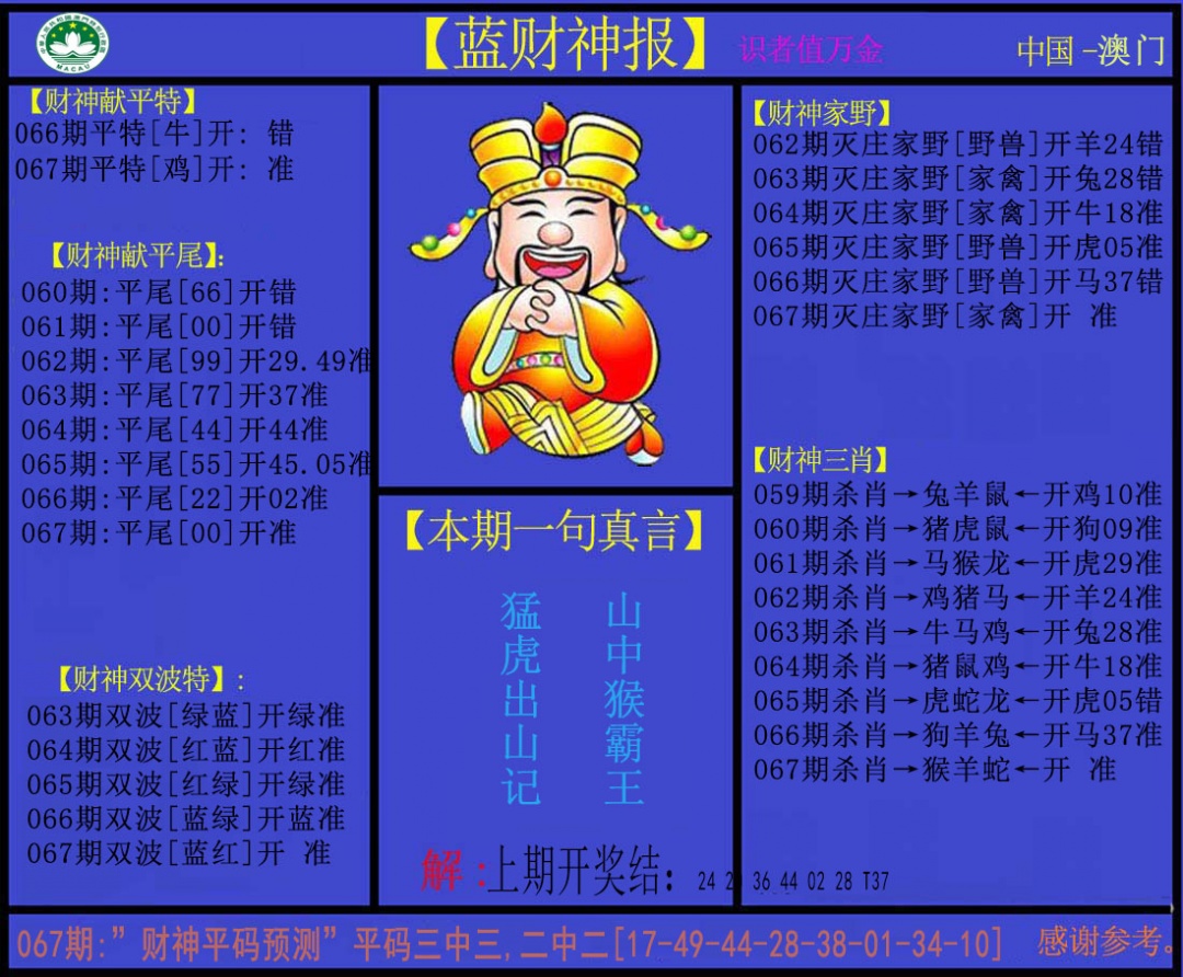 | 067期③肖 | 兔虎鸡 | 开:猫00准 |