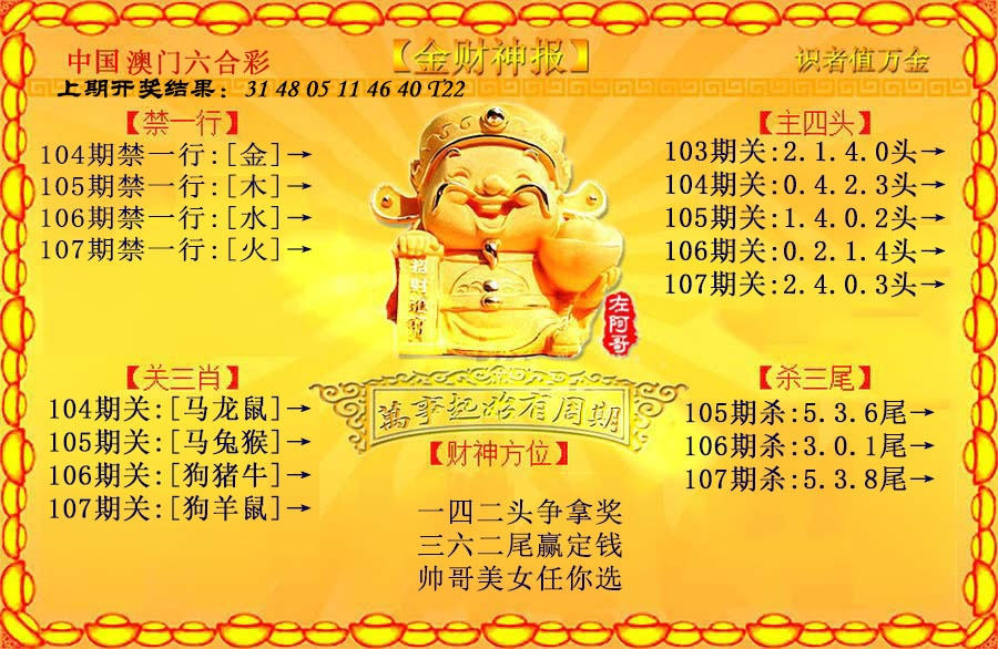 | 105期⑦肖 | 猪狗猴蛇羊龙兔 | 开:兔28准 |
