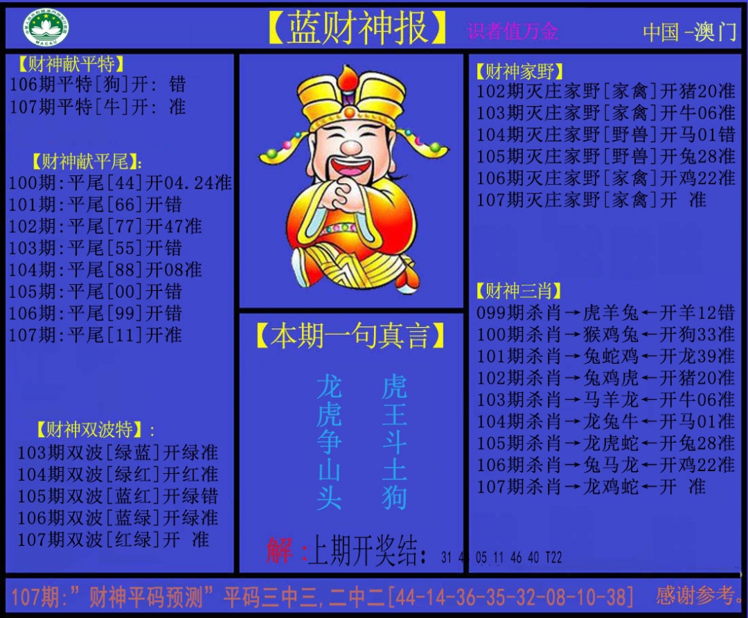 | 107期②肖 | 猪鸡 | 开:猫00准 |