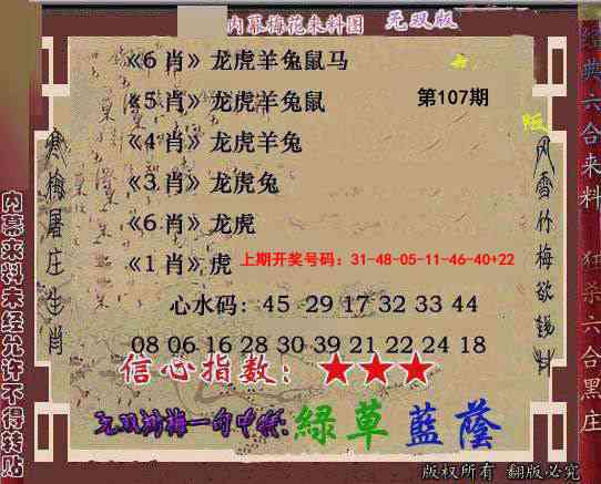 | 107期⑥肖 | 猪鸡羊猴狗马 | 开:猫00准 |