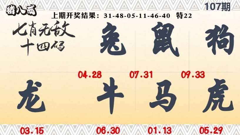 | 107期⑦肖 | 猪鸡羊猴狗马兔 | 开:猫00准 |